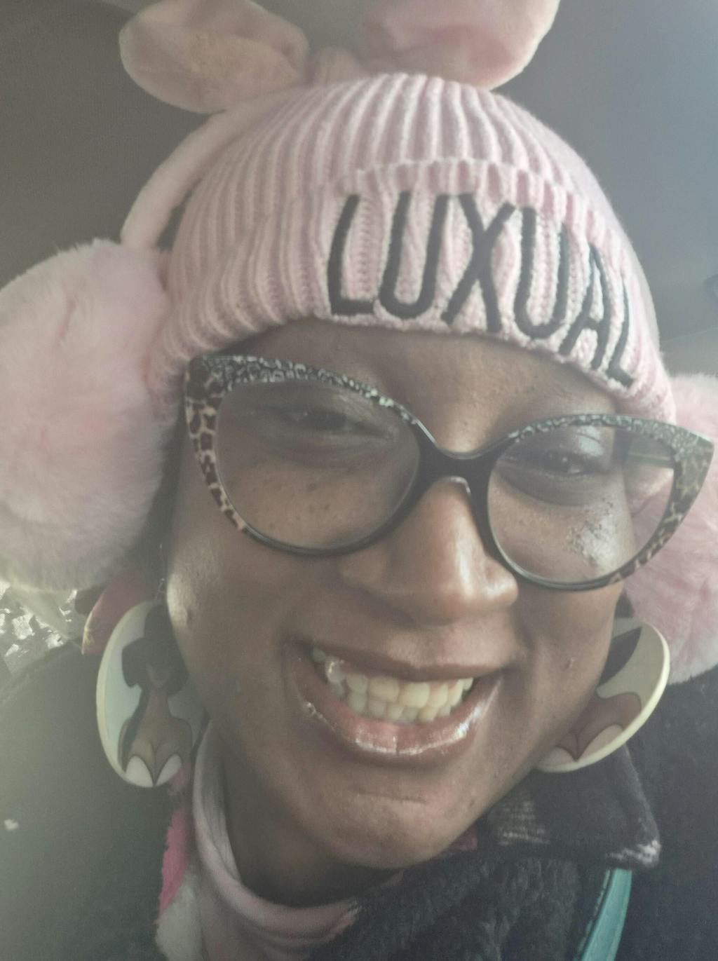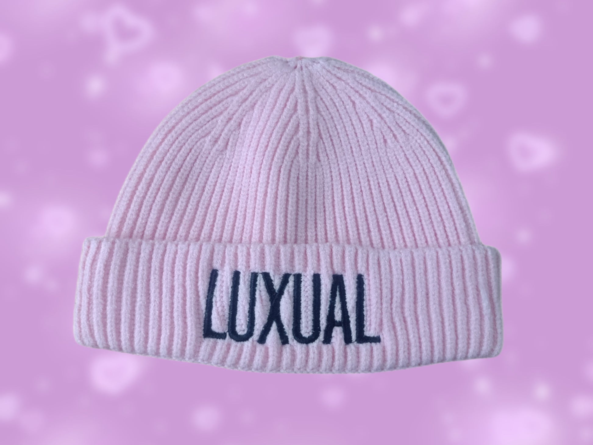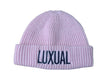 - Pink Beanie with the word 'Luxual'.